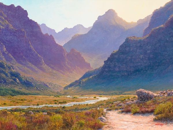 A3 limited edition (80), signed and numbered Andrew Cooper print of his Morning Haze, Worcester painting.